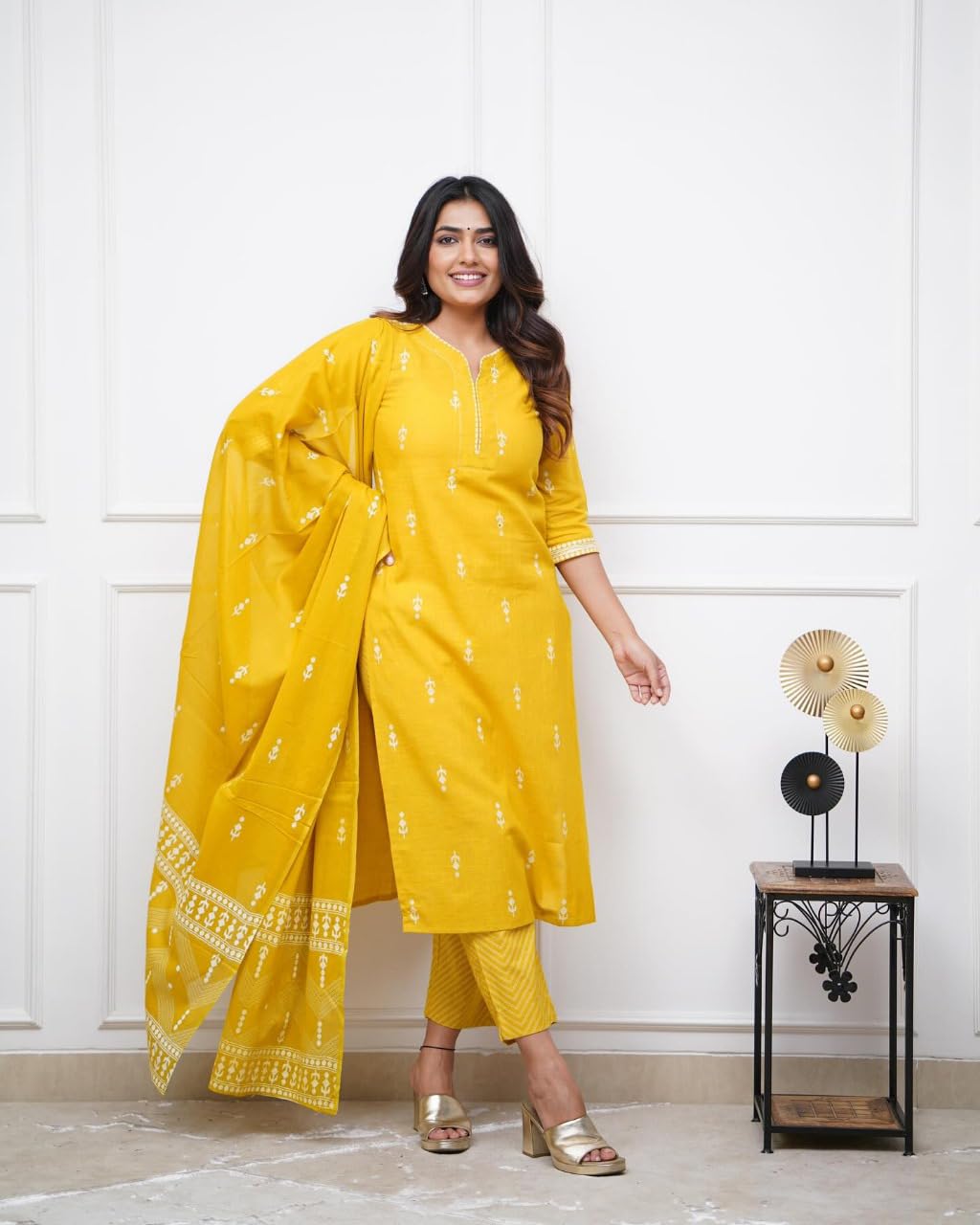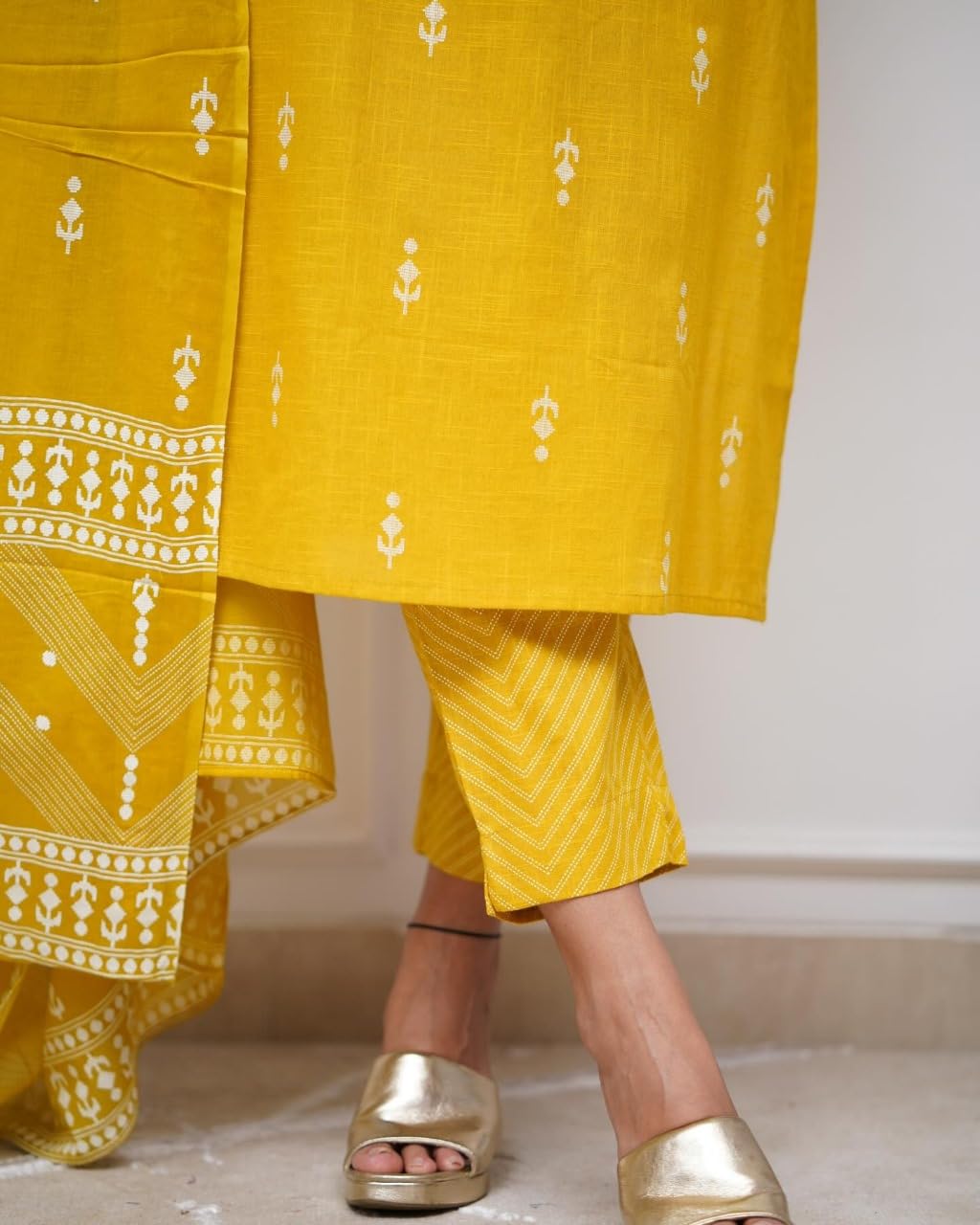 - “This three piece set includes kurta, Pant , Dupatta”