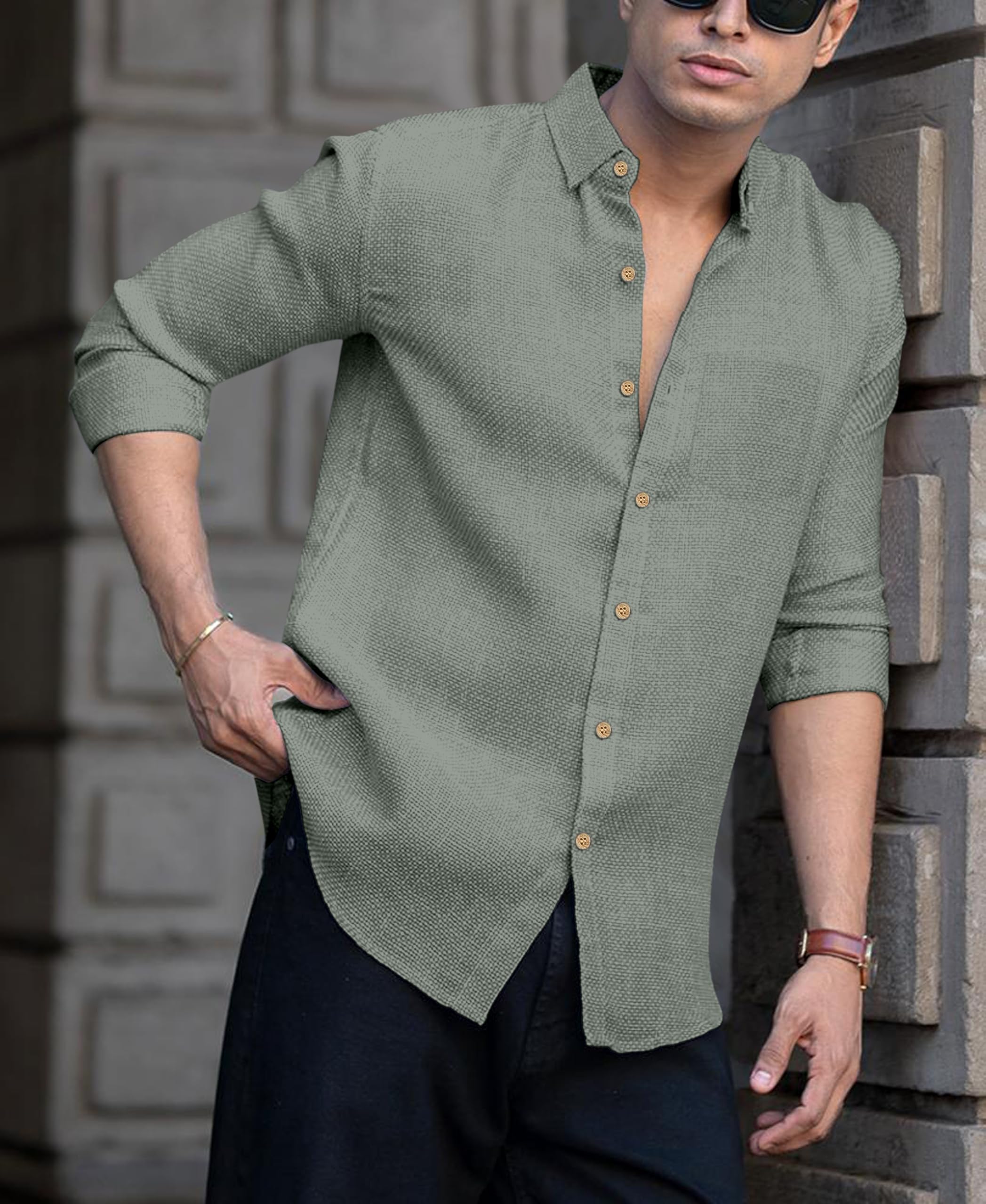 Men’s Solid Linen Cotton Shirt | Casual | Plain | Full Sleeve | Summer-Regular Fit| Men Stylish Shirt | Everyday Formal Wear (IN, Alpha, S, Regular, BLACK)